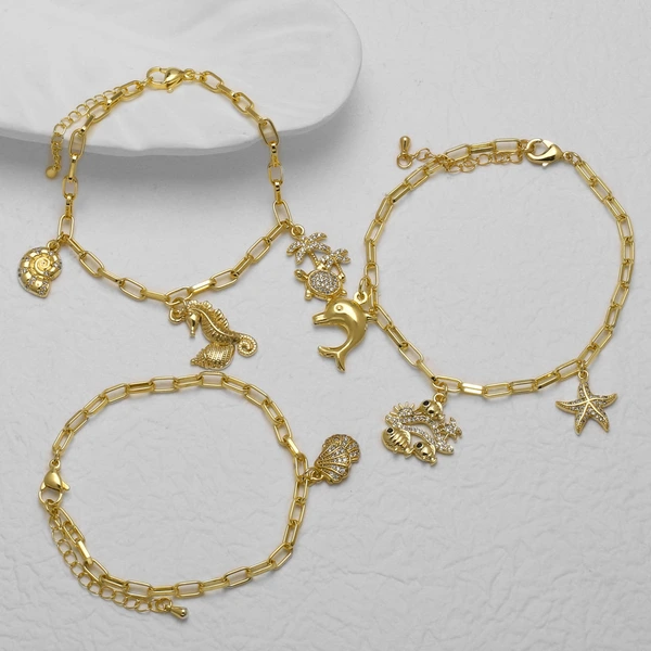 как ювелирные изделия, новинка, хит продаж, подвеска в виде морской звезды и черепахи в океаническом стиле, позолоченный браслет, ювелирные изделия оптом brn51