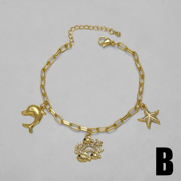 как ювелирное украшение, браслет с подвеской в ​​виде морской звезды в океаническом стиле, медный позолоченный браслет, браслет bra79