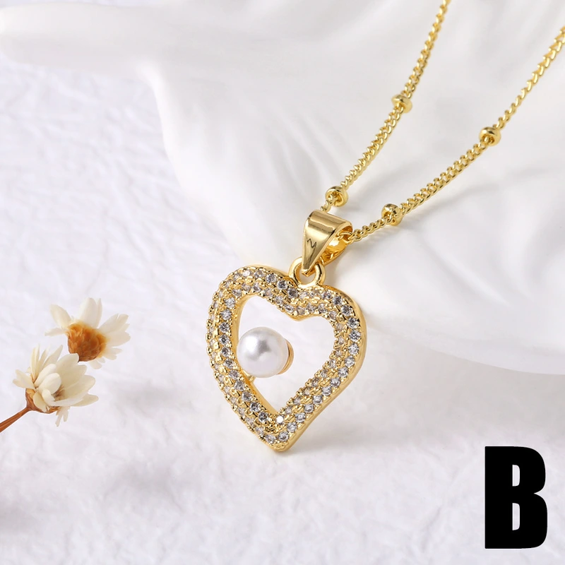 как ювелирное украшение, покрытая медью 18-каратного золота с жемчужиной, кулоном в виде сердца, цепочка на ключицу, женское ожерелье nka020