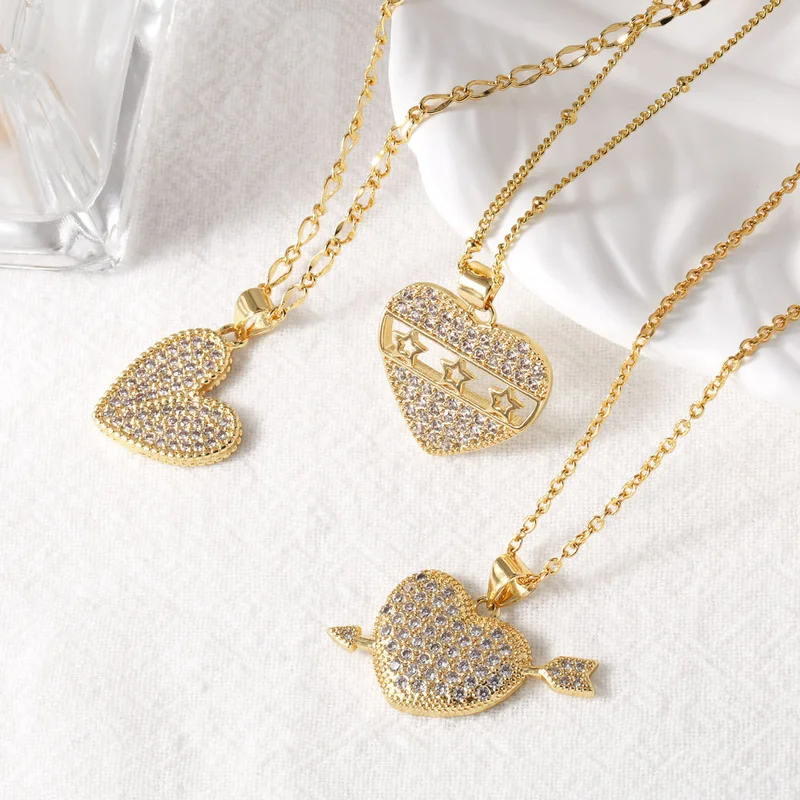 как ювелирное украшение, стильное ожерелье в форме сердца с подвеской из цельного циркония, позолоченная цепочка на ключицу в форме звезды для женщин nkt90