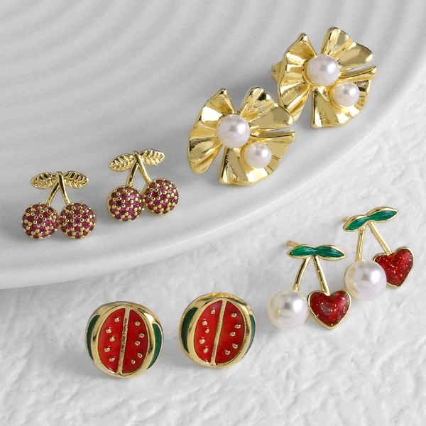 как ювелирные изделия, популярные нишевые дизайнерские серьги с фруктами и вишней, серьги с арбузом, покрытые настоящим золотом, erz58