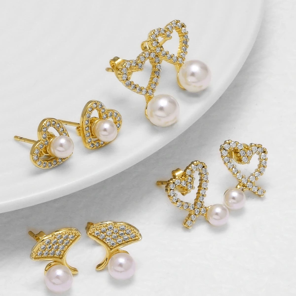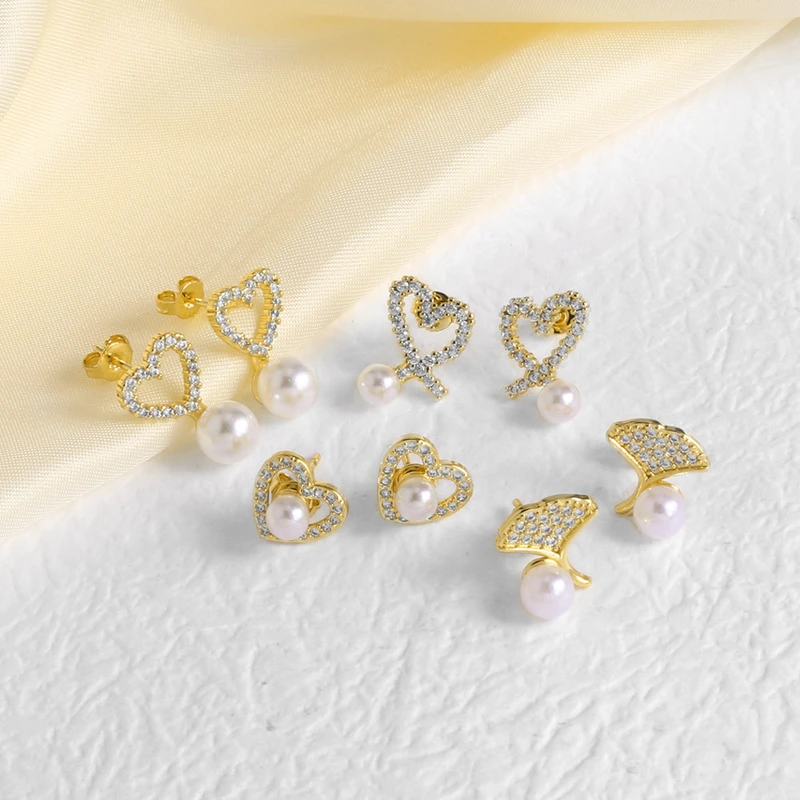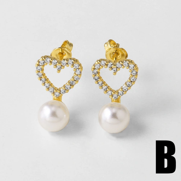 как ювелирные изделия серьги в форме сердца с жемчужным покрытием, покрытые медью, инкрустированные настоящим золотом циркониевые серьги в форме сердца, серьги era244