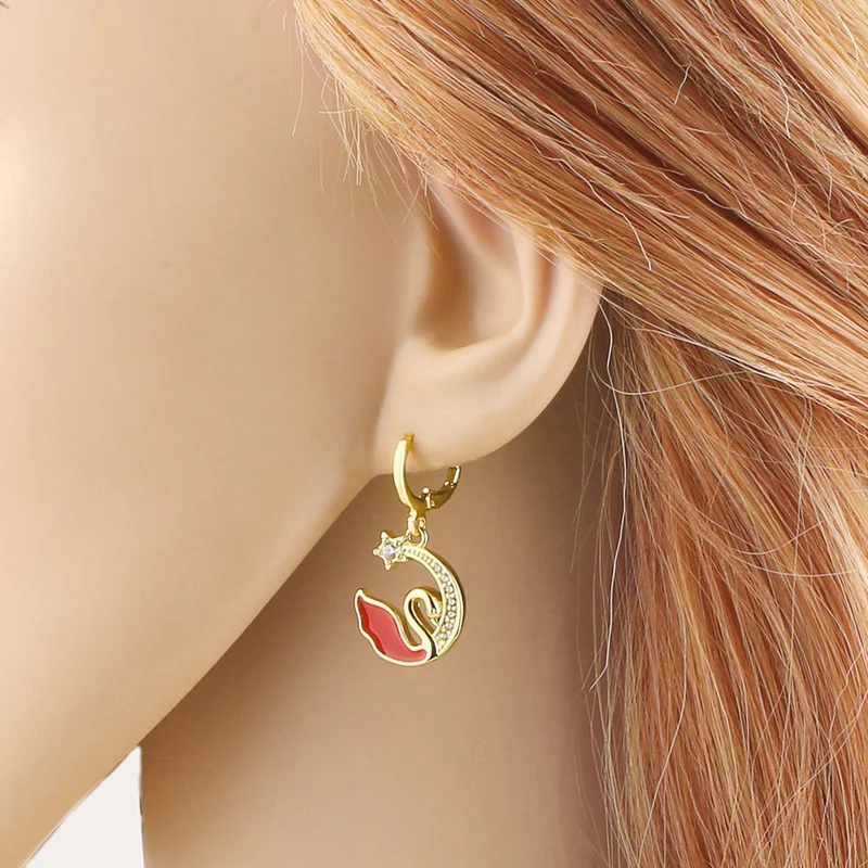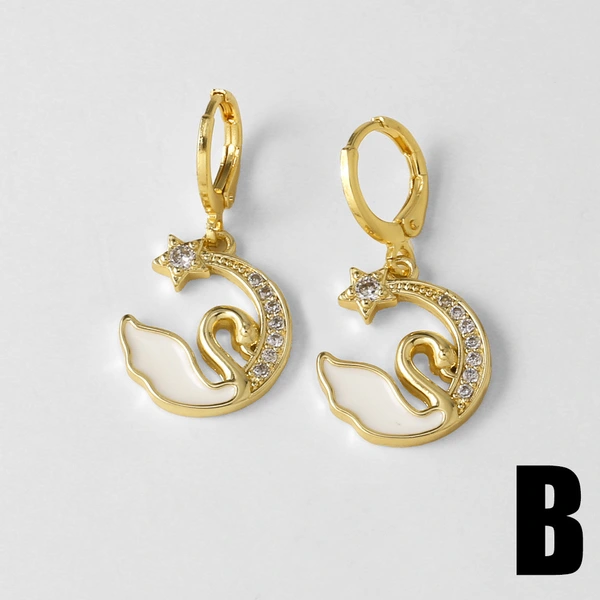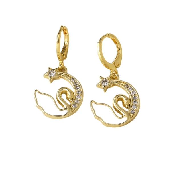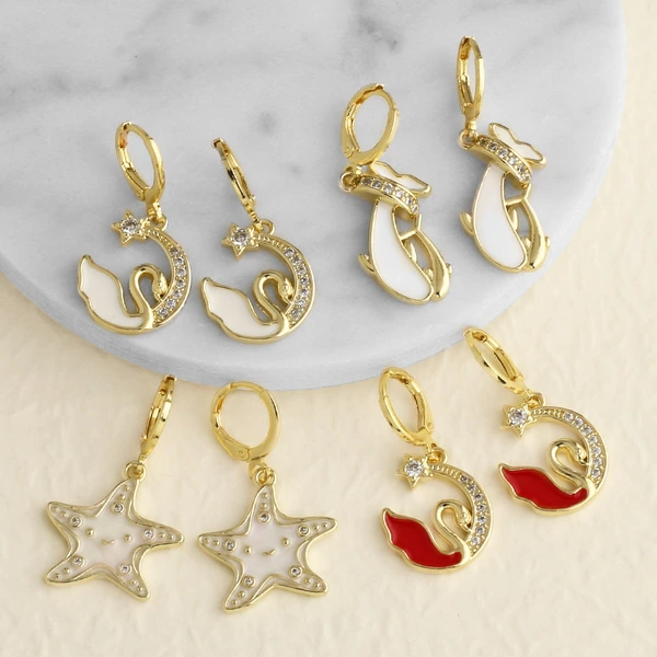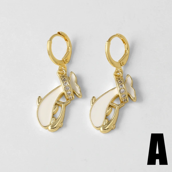 серьги из настоящего золота с медным покрытием в форме морской звезды и кита, микро-инкрустированные цирконием серьги в форме рыбьего хвоста, серьги erz86