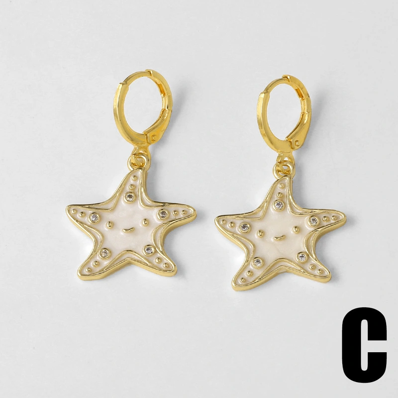 серьги в виде морских звезд, позолоченные, женские, в виде рыбок, серьги в виде капель океана и ветра, масляного цвета, erz05