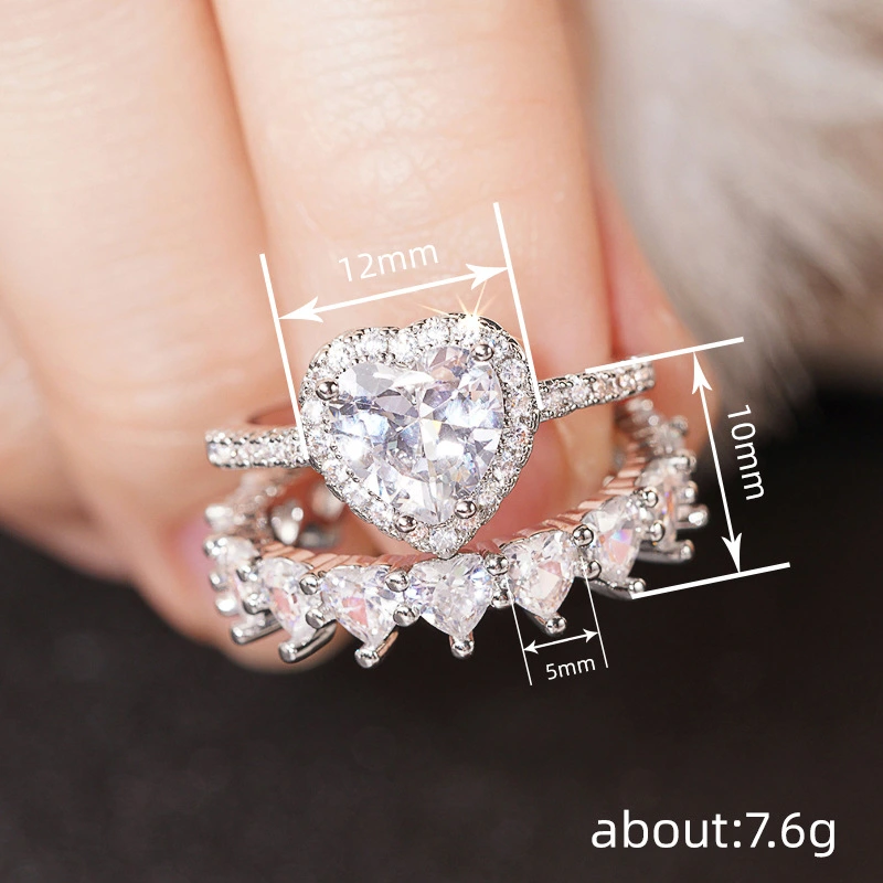 Кольца ко Дню святого Валентина для женщин, романтичный подарок на свадьбу принцессы, элегантное кольцо с блестящим цирконием в форме сердца