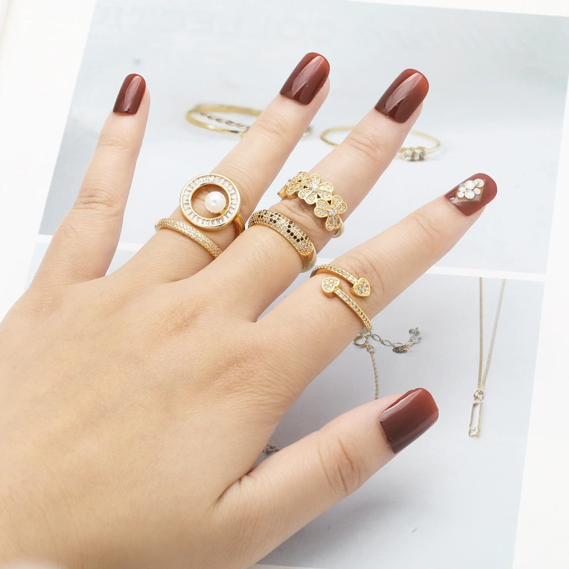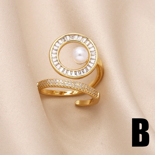 Кольцо в европейском и американском стиле с простой модой, универсальное, высококачественное, инкрустированное цирконием и позолоченное жемчугом, rin11
