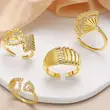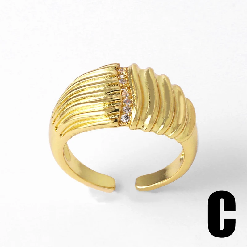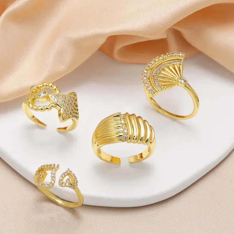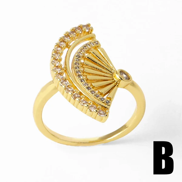 Кольцо в форме веера с медным покрытием из настоящего золота, инкрустированное цирконами, rih11
