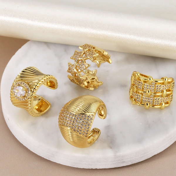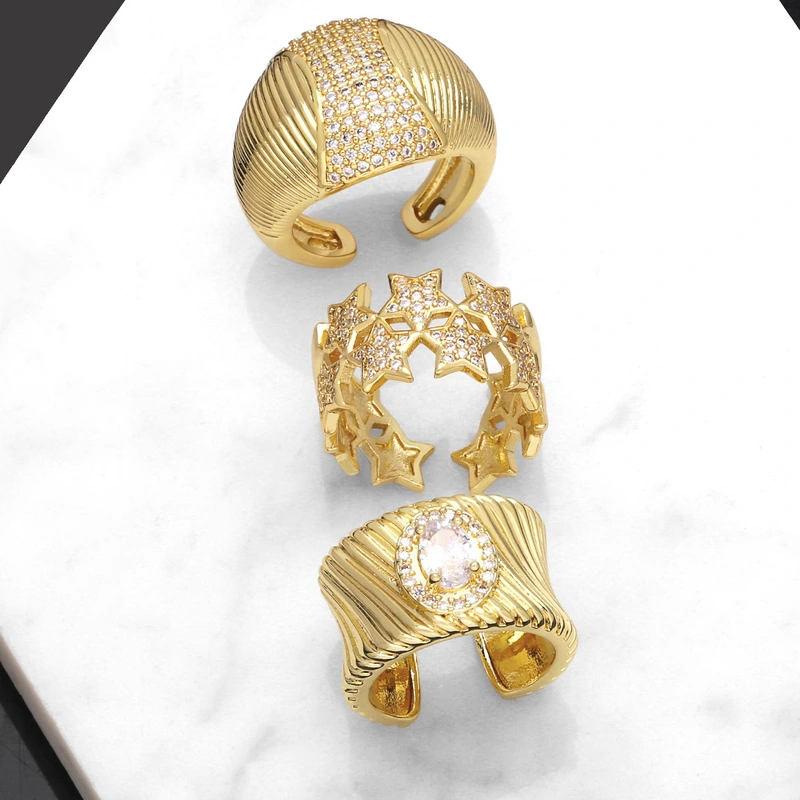 Кольцо в форме звезды с инкрустацией из циркония, европейское и американское, позолоченное, ретро, ​​геометрическое, открытое кольцо rip62
