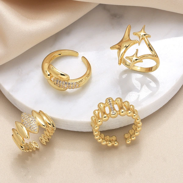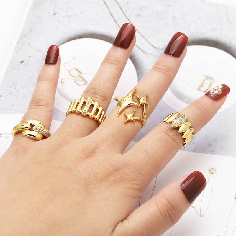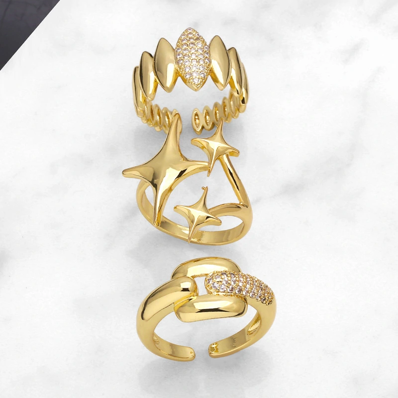 Кольцо-звезда с инкрустацией из циркона, позолоченное, геометрическое, открытое кольцо, европейская и американская индивидуальность, rir23