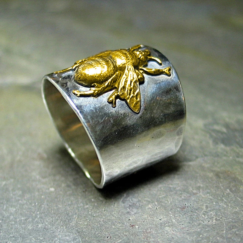 Кольцо с двухцветным рисунком в виде животных в стиле ретро с рисунком насекомых, широкая версия, кольцо для указательного пальца для мужчин и женщин, ювелирное украшение для властных мужчин
