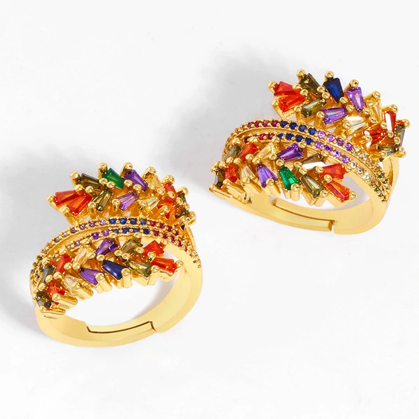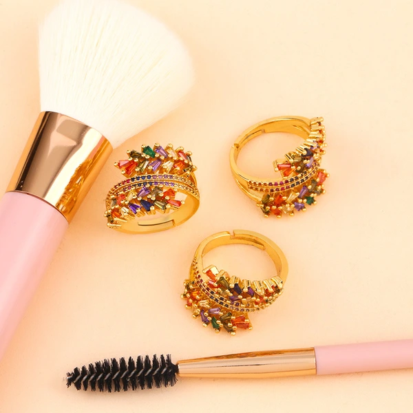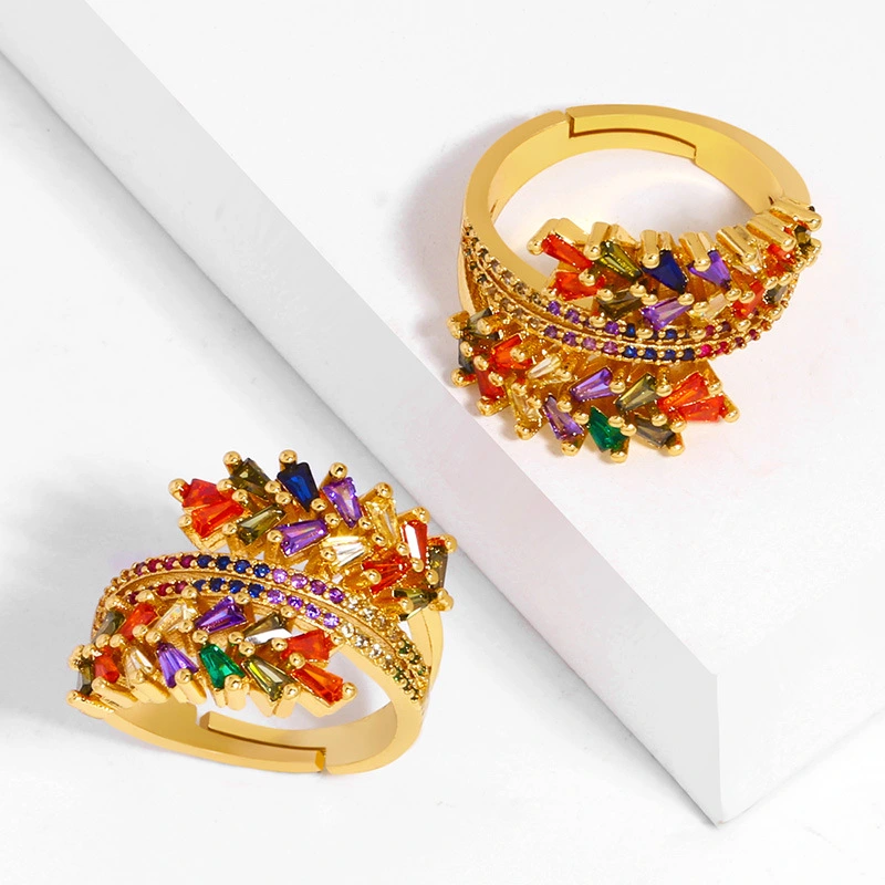 Кольцо с оливковой ветвью, креативное, микроинкрустированное цветным цирконом, трёхслойное, женское, оптовая продажа, rij28
