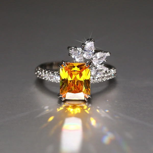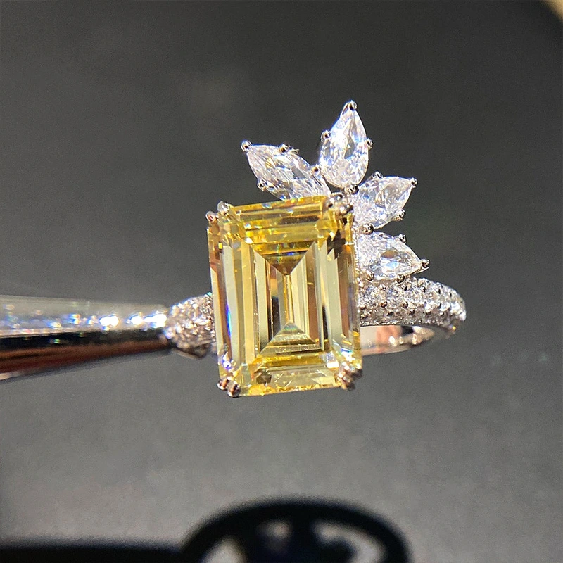 Кольцо с цирконами и бриллиантами "Темпераментная принцесса" в стиле ретро с желтым бриллиантом в форме цветка, женское, супер-яркое, модное, кружевное кольцо