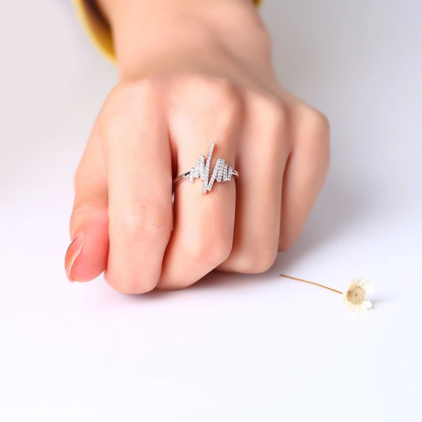 Кольцо с японским и корейским цирконием, подарок на День святого Валентина для девушек, кольцо с микроинкрустацией из циркония в форме сердца, электрокардиограмма, кольцо-хвост rif10
