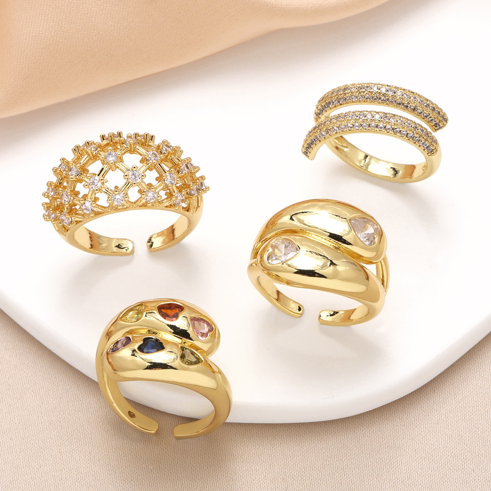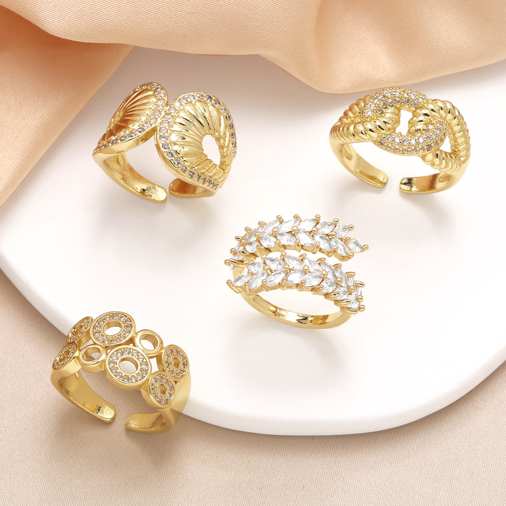женское кольцо неправильной формы с медным покрытием, инкрустированное настоящим золотом, с открытым кольцом из циркония rij52
