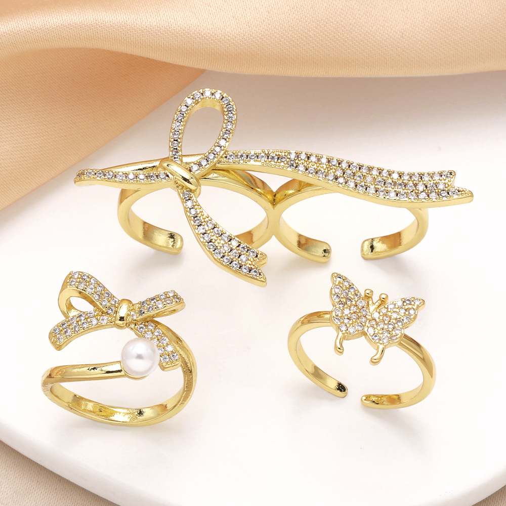 как ювелирное кольцо-бантик с медным покрытием, инкрустированное настоящим золотом, цирконием, бабочка, открытое кольцо, обод 93