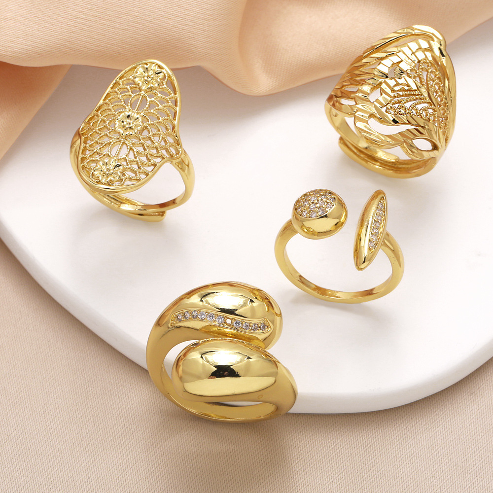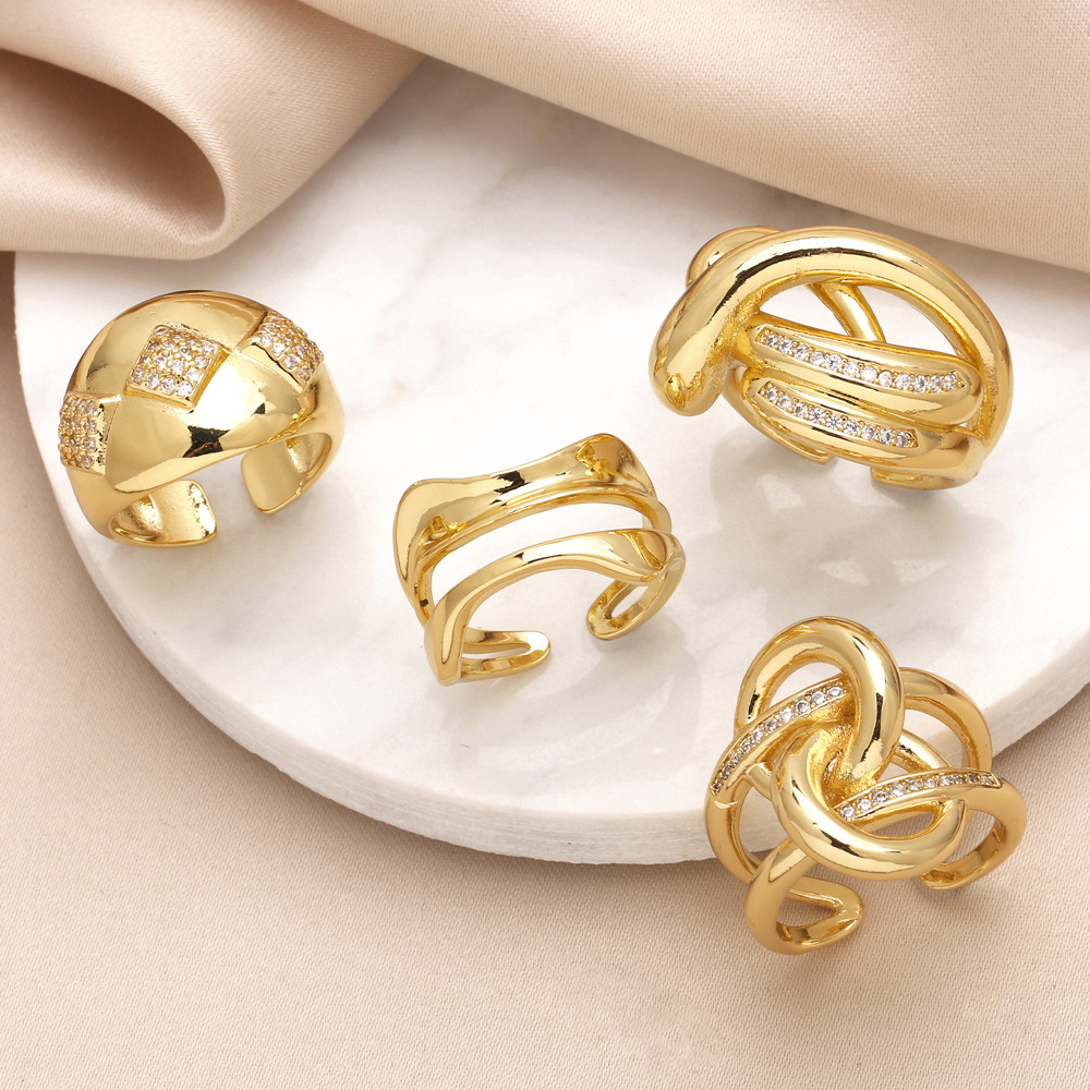 как ювелирное изделие в Европе и США, популярное женское кольцо неправильной формы с медным покрытием, инкрустированное настоящим золотом, с открытым кольцом из циркония, 46