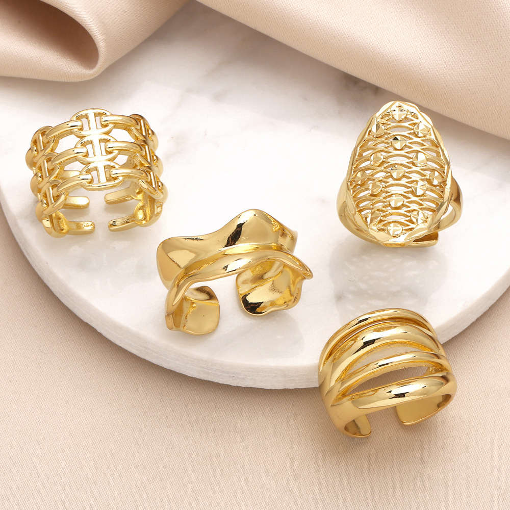 как ювелирное изделие, горячая распродажа, геометрическое кольцо, полированное медное покрытие, настоящее золото, открытое кольцо, оправа 75