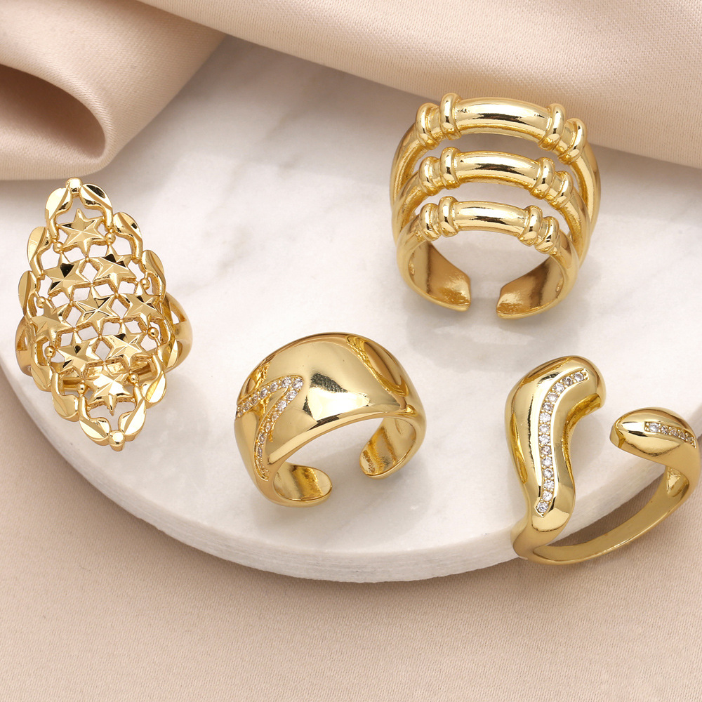 как ювелирное кольцо, горячее предложение, любовное гладкое кольцо, покрытое медью, 18-каратное золото, звезда, открытое кольцо rin53