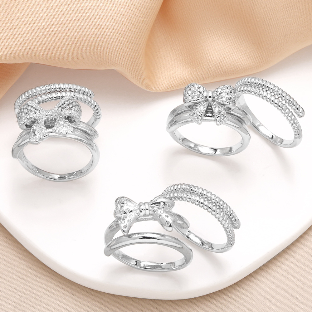 Распродажа как ювелирного изделия, европейское и американское женское кольцо-бантик с медным покрытием, инкрустированное настоящим золотом, двухслойное кольцо из циркония rik31