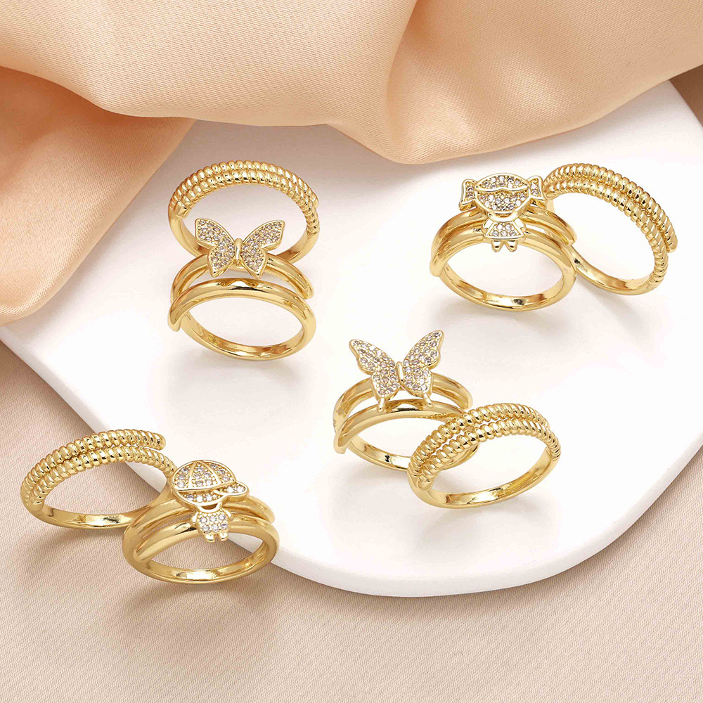 Распродажа как ювелирного изделия, двухслойное кольцо с европейской и американской бабочкой, покрытое медью, 18-каратное золото, цирконий, кольцо для мальчика и девочки, оправа 84