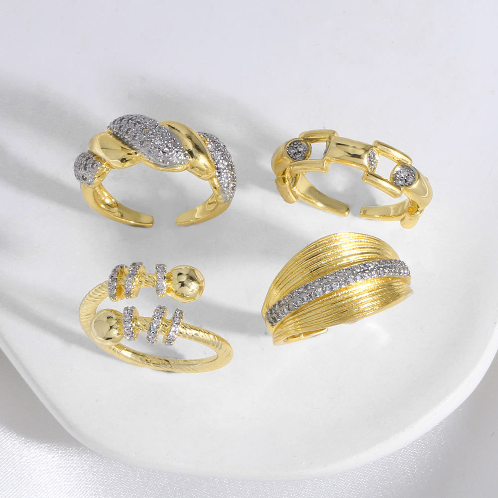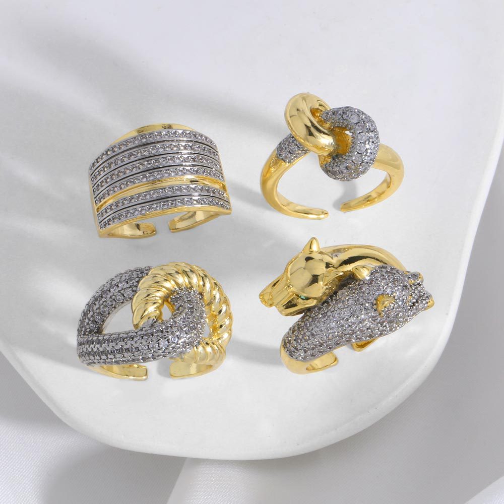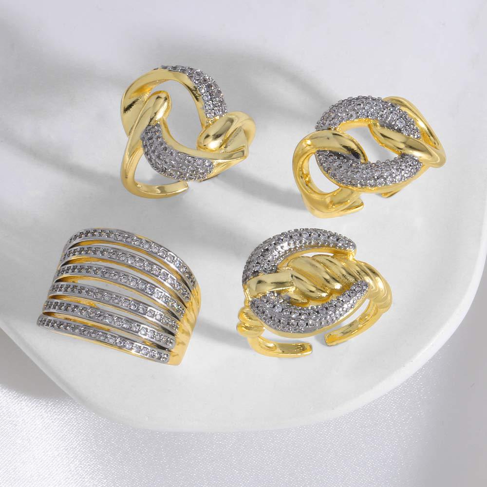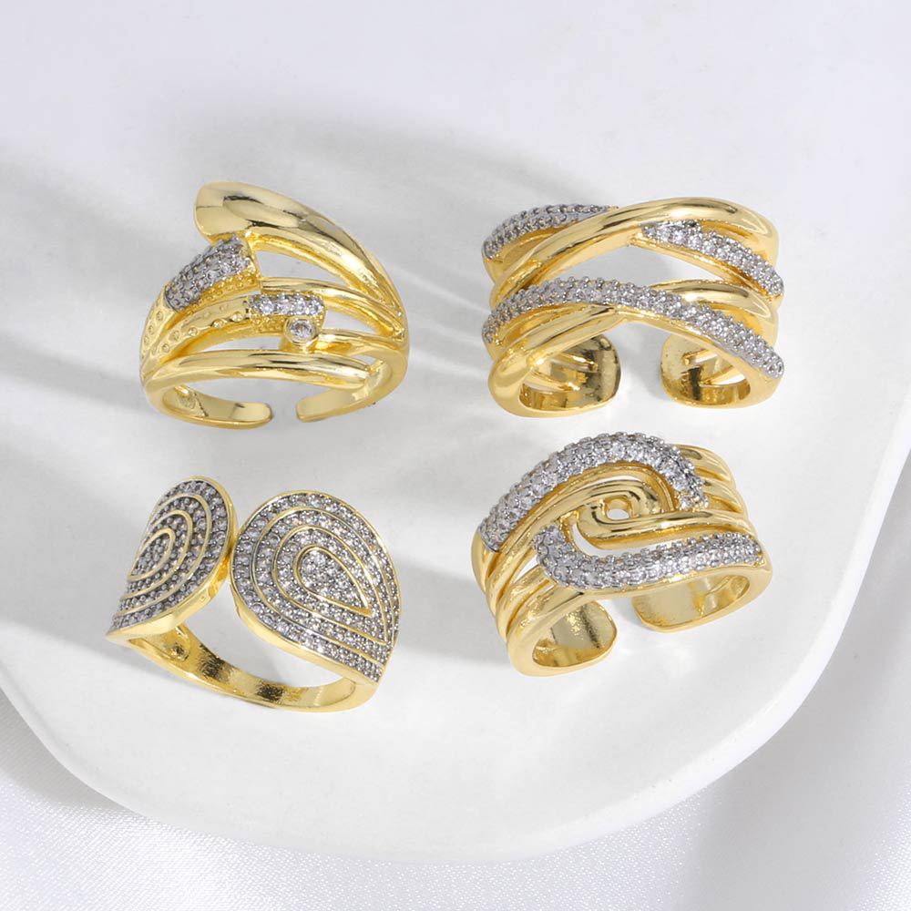 как ювелирное изделие, двухцветное смешанное мозаичное цирконовое медное покрытие, нерегулярное открытое кольцо riq97