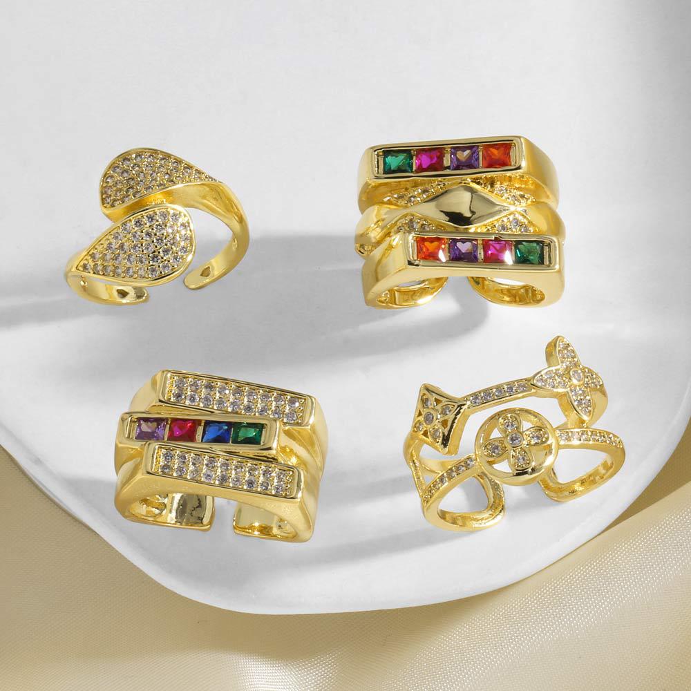 как ювелирное изделие, европейское и американское, новое цветное кольцо с цирконом неправильной формы, женское, покрытое медью, 18-каратное золото, открытое кольцо rir06