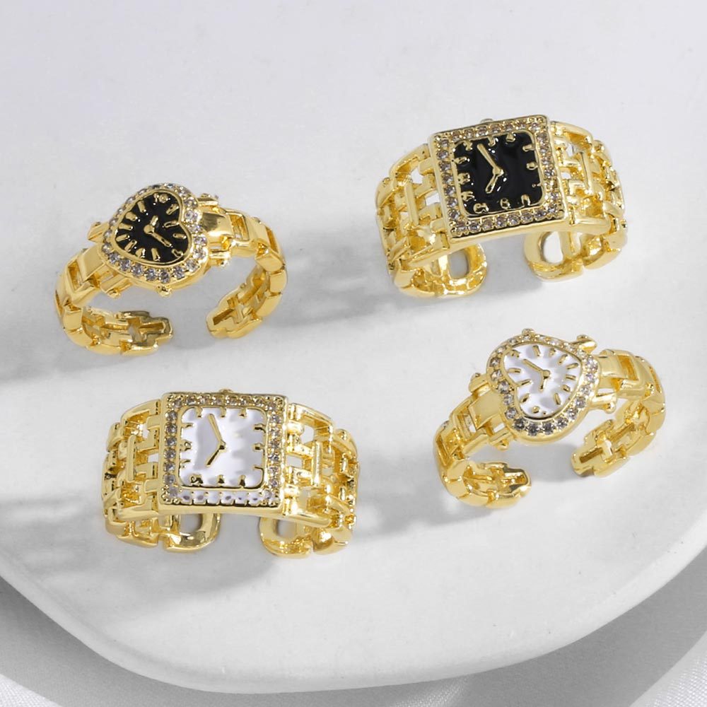 как ювелирное изделие, новое хит продаж, женское кольцо-часы с медным покрытием, 18-каратное золотое открытое кольцо rij20
