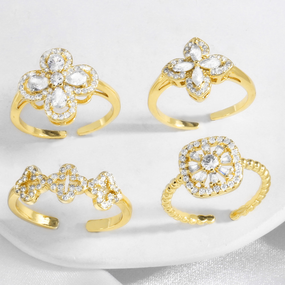 как ювелирные изделия из Европы и Америки, новое хит продаж, женское кольцо с четырьмя листами клевера, покрытое медью и инкрустированное цирконами, ris59