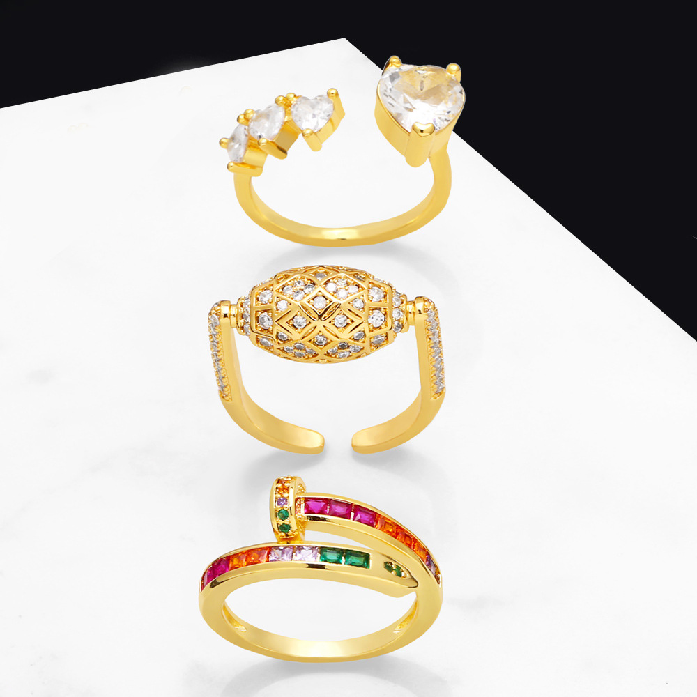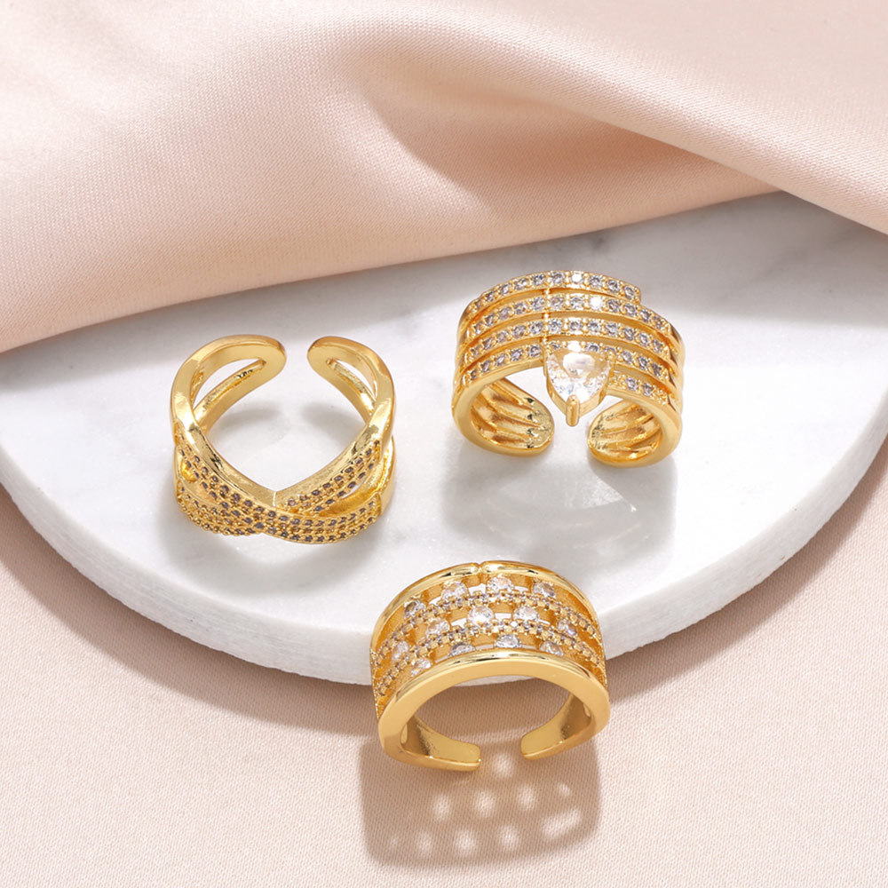Популярное европейское и американское модное кольцо с инкрустацией из циркония, женское, универсальное, современное, позолоченное, открытое кольцо ris45