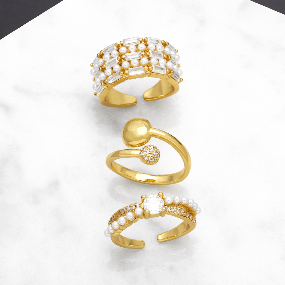 Распродажа, женское кольцо с европейским и американским жемчугом, простой дизайн, геометрический, открытый циркон, легкое, роскошное кольцо с оправой 25