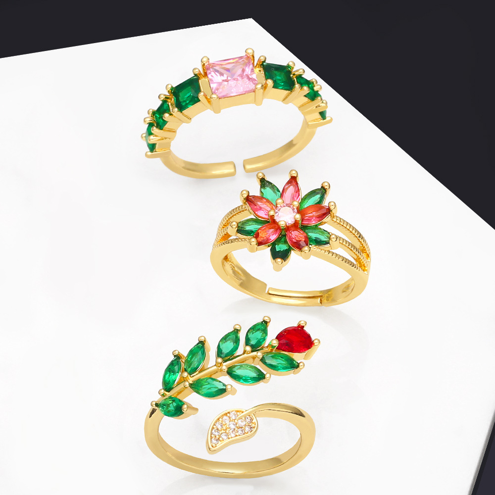 Распродажа, кольцо-цветок европейского и американского дизайна, микроинкрустированное цветным цирконом, открытое регулируемое кольцо riq98