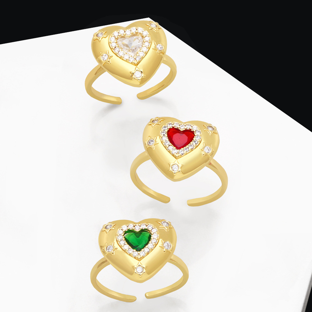 Новое европейское и американское кольцо с геометрическим сердцем и бриллиантами в стиле ретро, ​​модное, цветное, блестящее, женское кольцо с цирконием, rip74