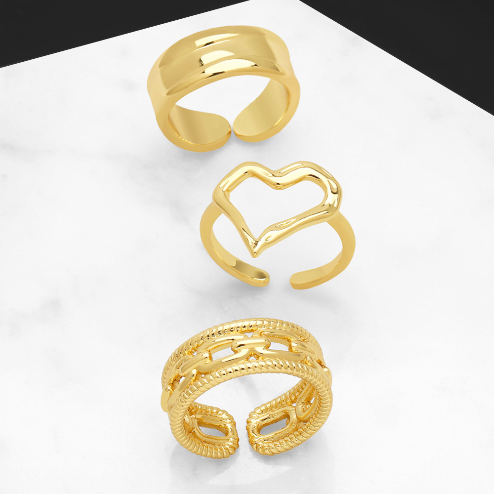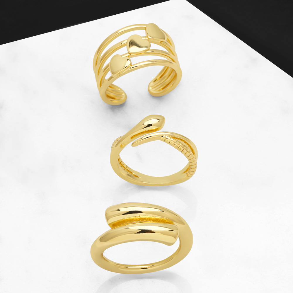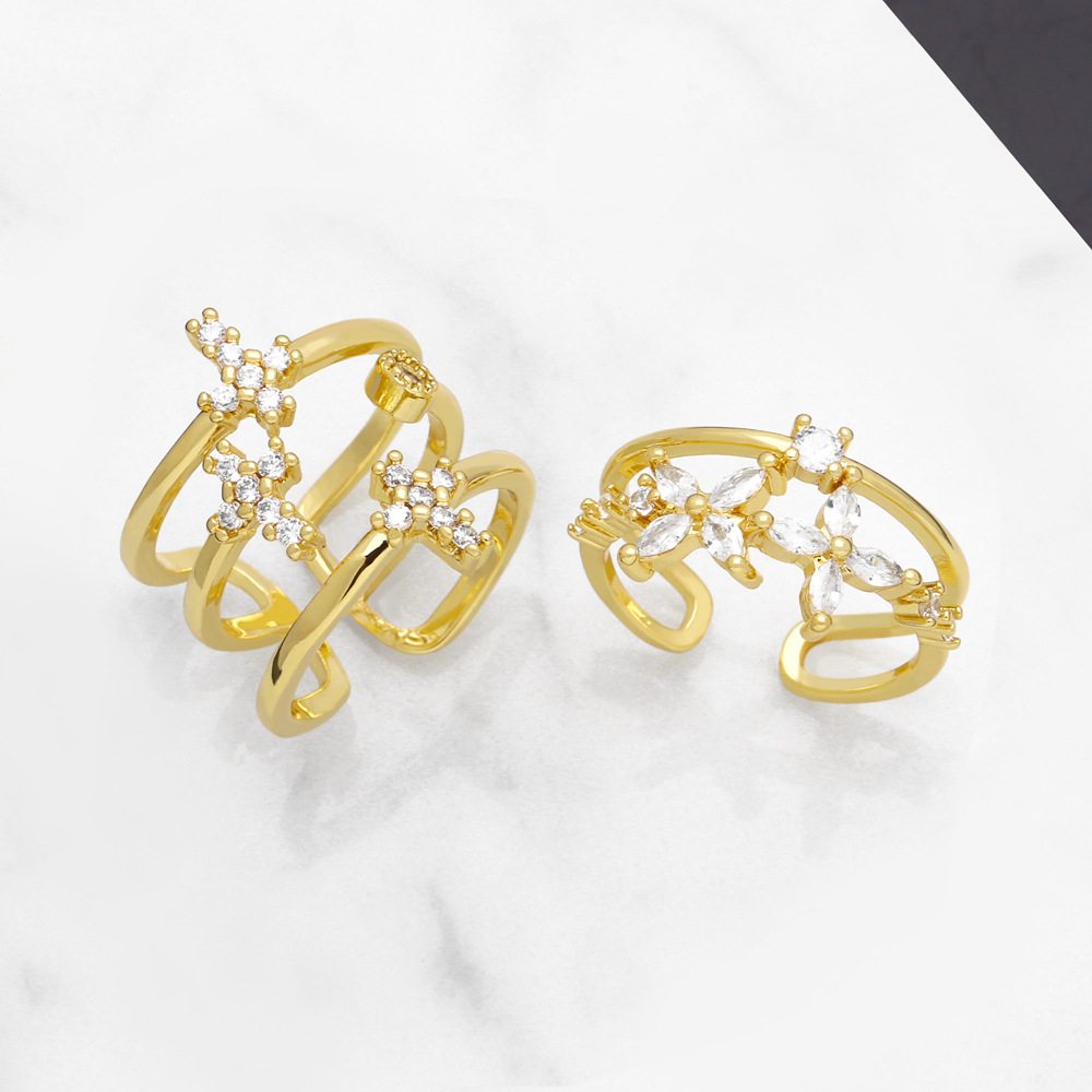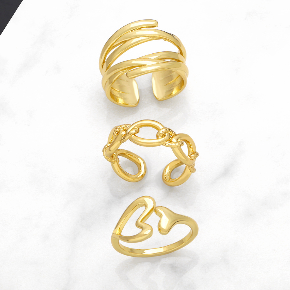 Новое европейское и американское кольцо с открытыми кольцами, нишевый дизайн, позолоченное медью 18 карат, нестандартная оправа для ювелирных изделий 56