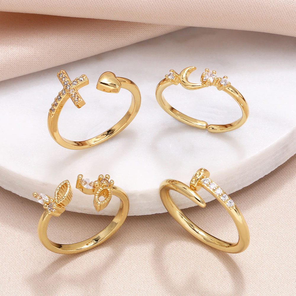 Распродажа, стильное кольцо в стиле «любовь», женское, нишевое, инкрустированное цирконием, позолоченное, кольцо-бабочка с крестом ris85