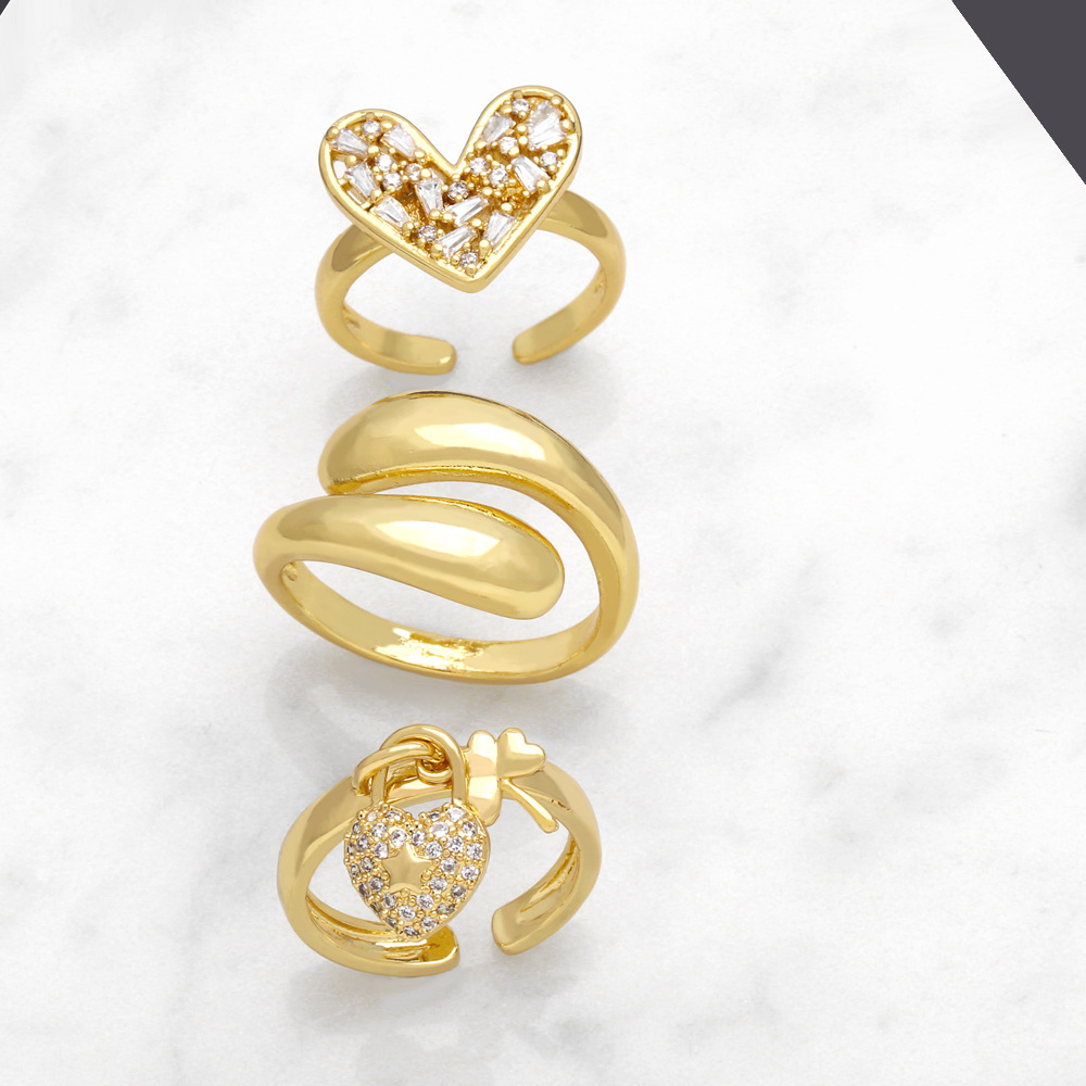 Кольцо с инкрустацией из циркония в форме сердца, женское, темпераментное, универсальное, высококачественное, позолоченное кольцо ris67