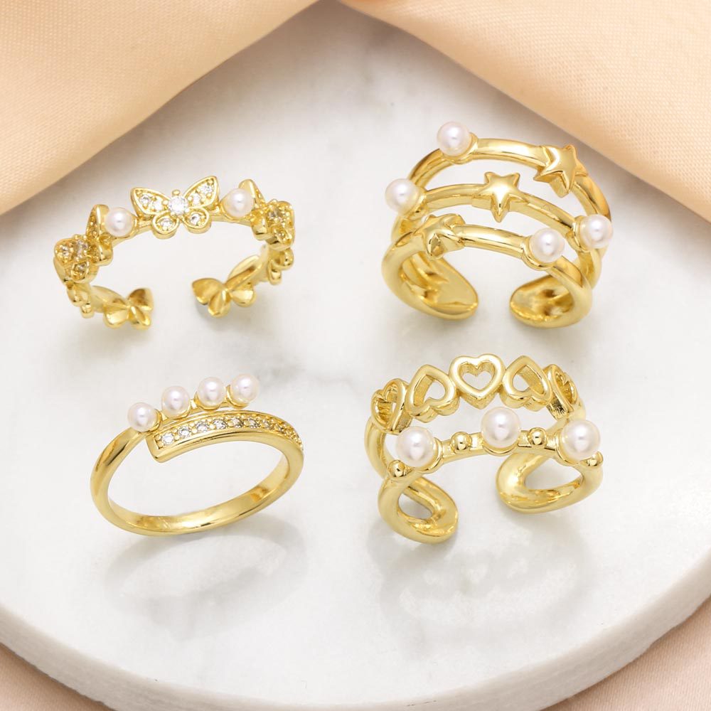 как ювелирное изделие, женское позолоченное кольцо-звезда с жемчугом в форме сердца и бабочки rir24