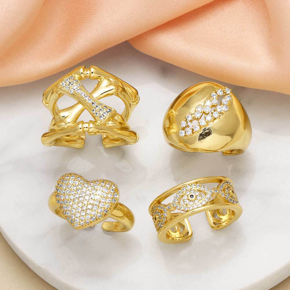 как ювелирное изделие, европейское и американское, покрытое медью 18-каратное золотое циркониевое кольцо в форме сердца, нерегулярное открытое кольцо ris72