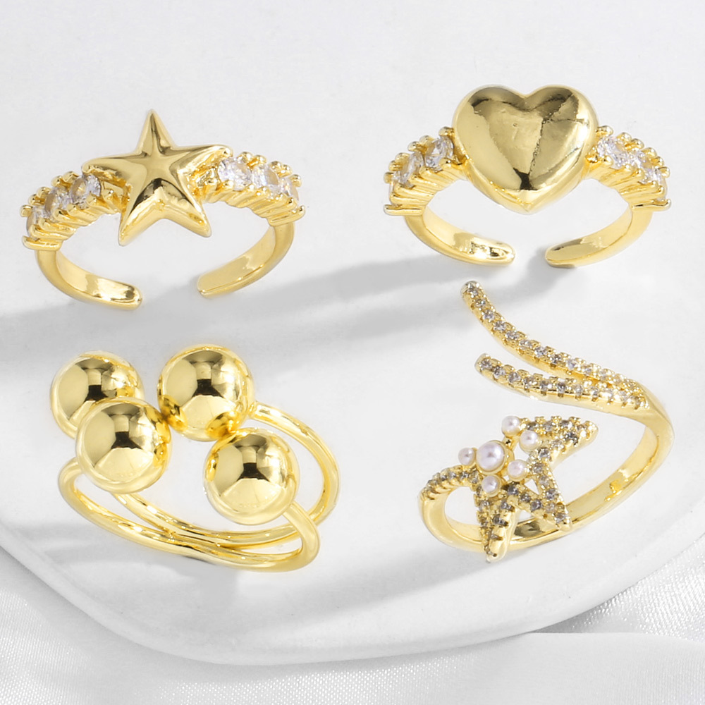 как ювелирное изделие европейского и американского производства, новое глянцевое кольцо Love Star с медным покрытием из 18-каратного золота riq54