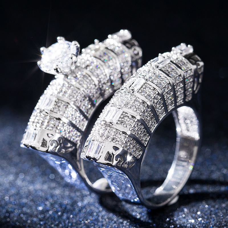 Новое европейское и американское преувеличенно роскошное женское кольцо, полное бриллиантов и микро-инкрустированных цирконий, парное кольцо, аксессуары для танцевальной вечеринки