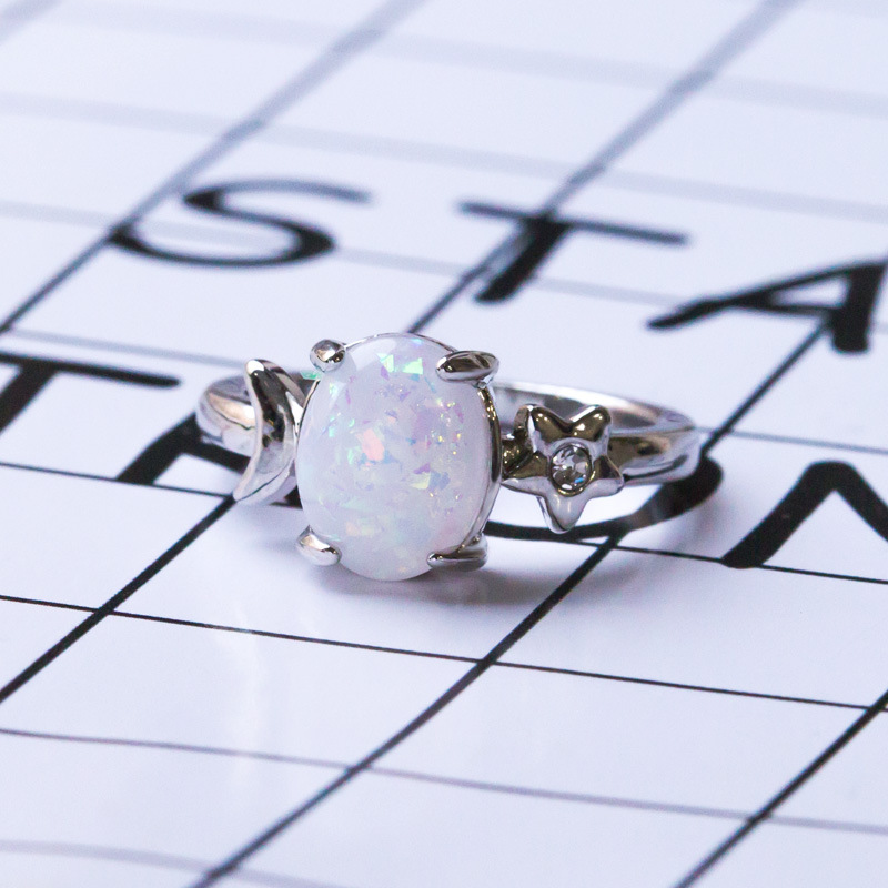 Прямые поставки с ювелирного завода, креативное кольцо с овальным опалом в форме звезды и луны, искусственный опал, посеребренные ювелирные изделия