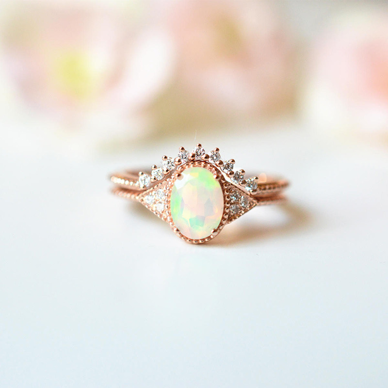 Новое популярное кольцо с опалом, розовым золотом и драгоценными камнями, подарок на свадьбу и день рождения