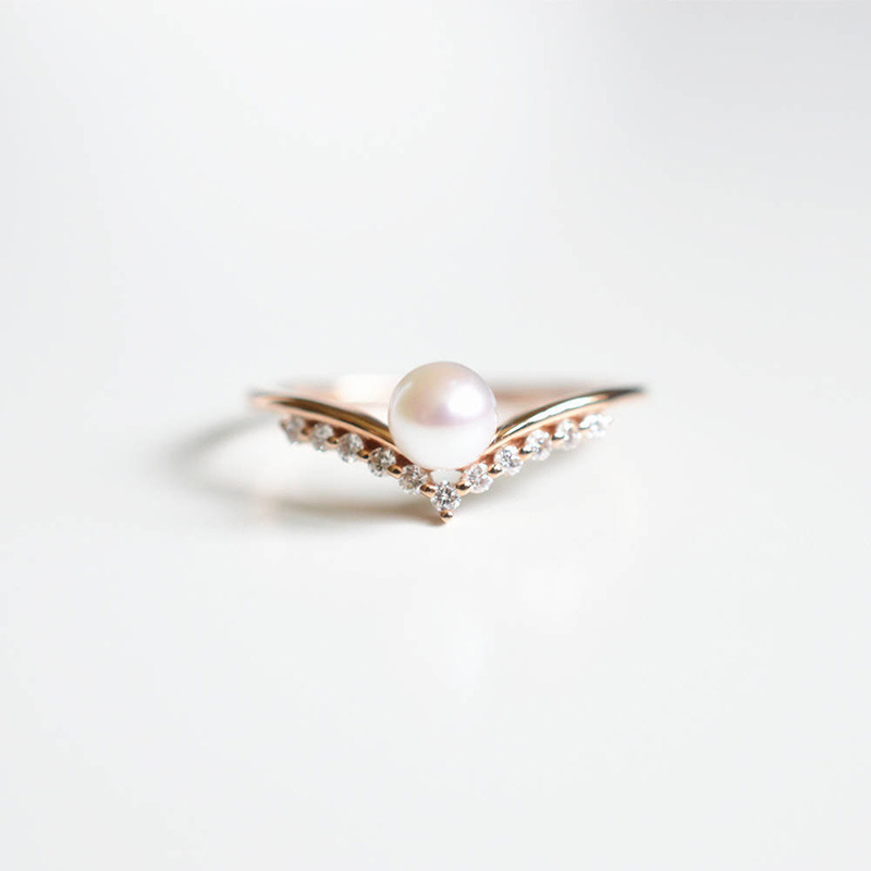 Ювелирные изделия в европейском и американском стиле, простое V-образное жемчужное кольцо для женщин, прямые продажи с фабрики, розовое золотое кольцо оптом