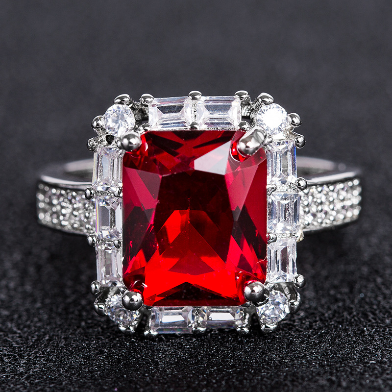Горячее оптовое креативное модное кольцо с красным камнем и цирконом для женщин, экспортный источник
