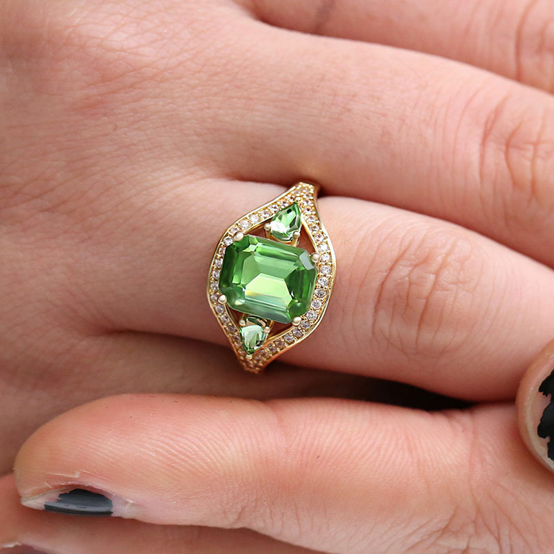 новые аксессуары европейская и американская мода обручальное кольцо с инкрустацией из зеленого циркона