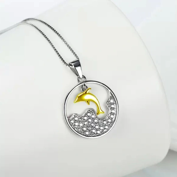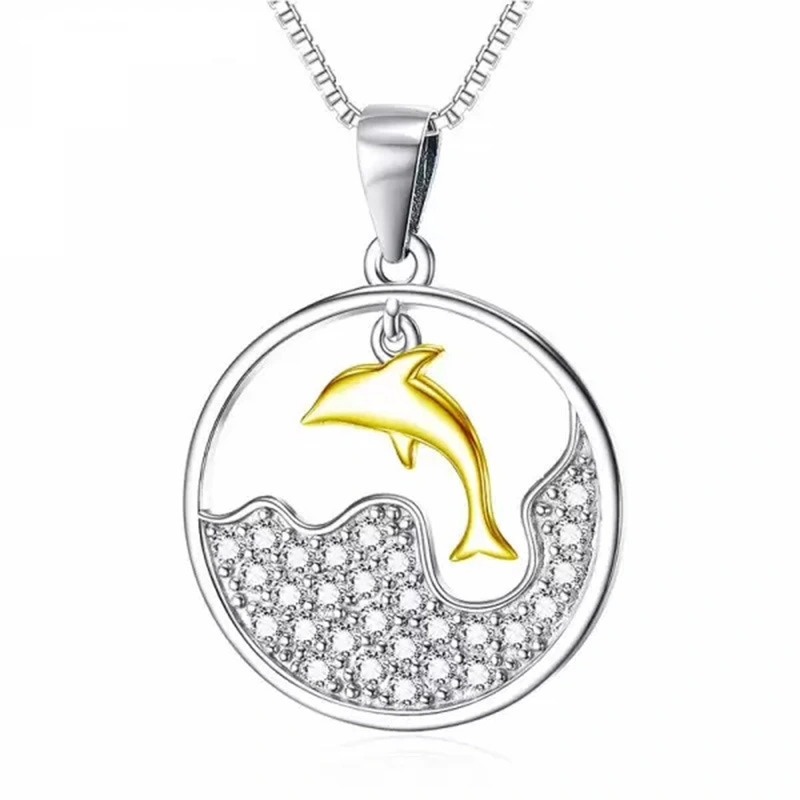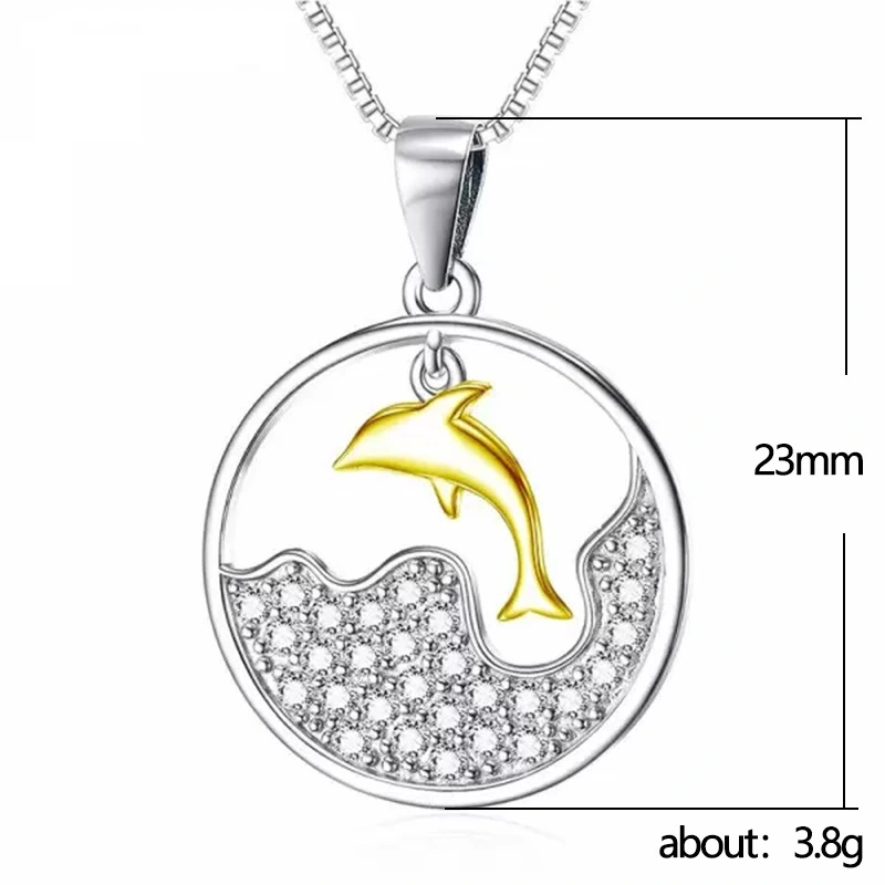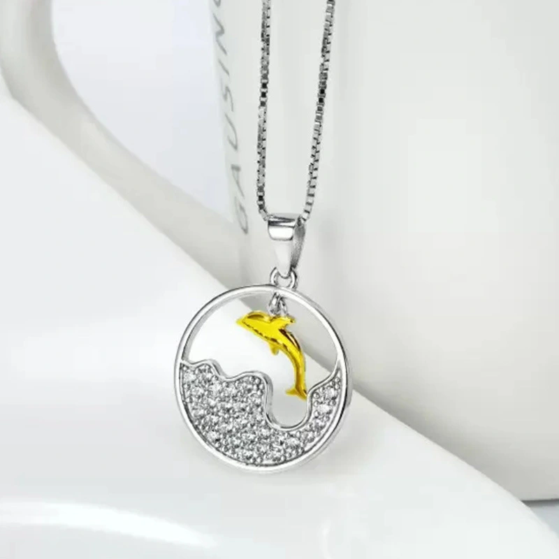 Креативные новые европейские и американские ювелирные изделия, симпатичное двухцветное ожерелье с подвеской в ​​виде дельфина, морской бриллиант, циркон, цепочка на ключицу
