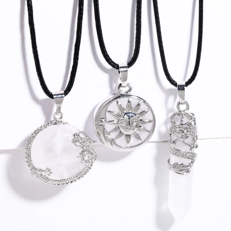 Кристаллическое ожерелье с геометрическим рисунком в виде круглой шестиугольной колонны, белое кристаллическое ожерелье с драконом и знаком зодиака, оптовая продажа ювелирных изделий nkb666