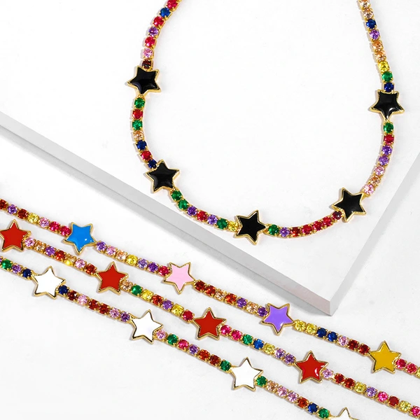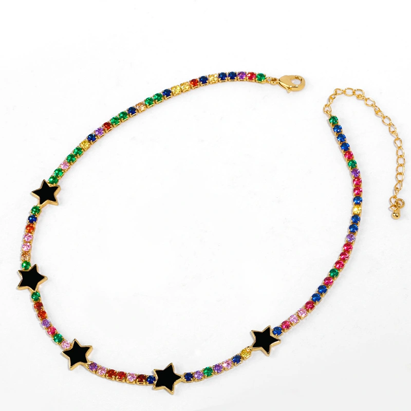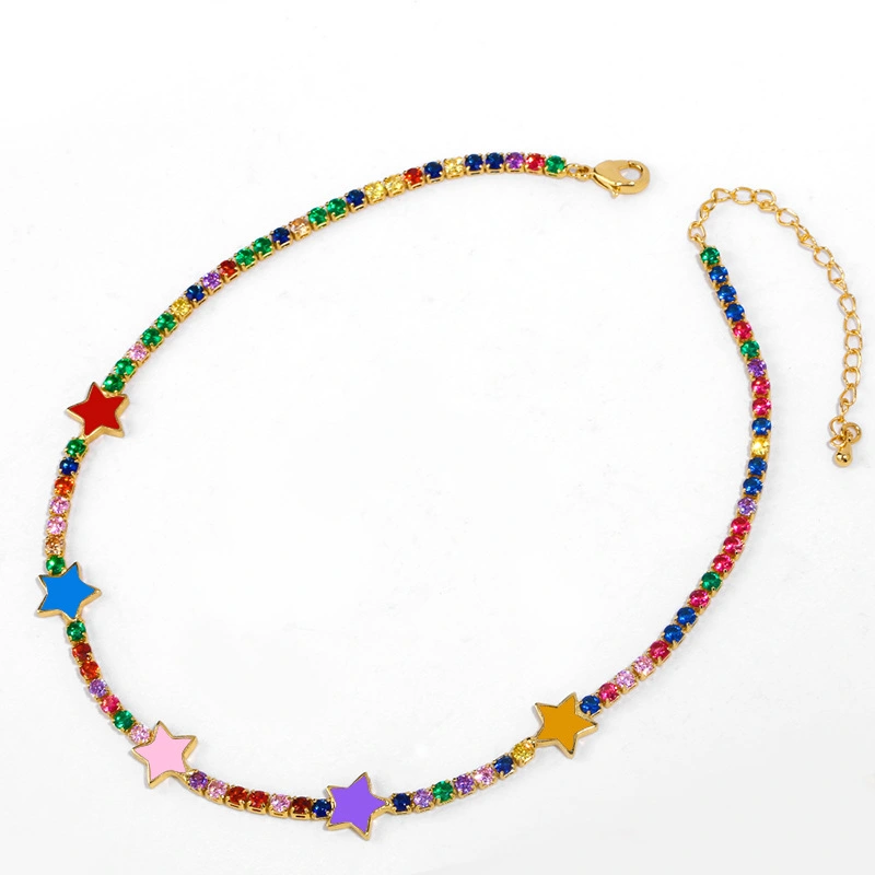 кулон в виде простой европейской и американской звезды, женское ожерелье с красной каплей масла, пятиконечной звездой, инкрустированной бриллиантами, nkp94