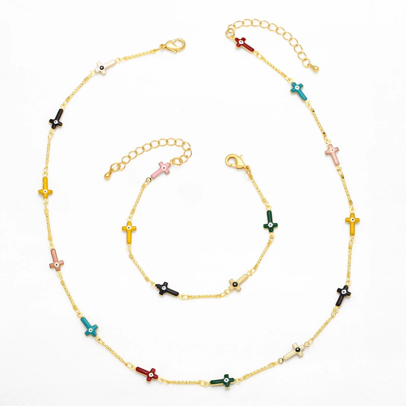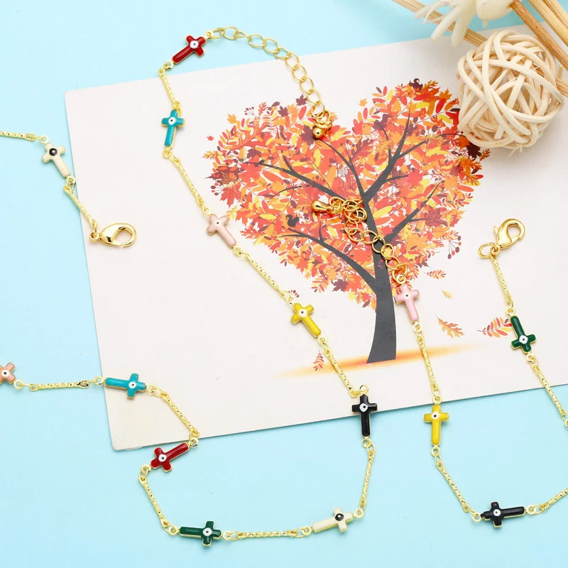Многоцветный масляный крест с каплями, дьявольский глаз, цепочка, ожерелье, браслет, уличные простые украшения, индивидуальные, nkb783