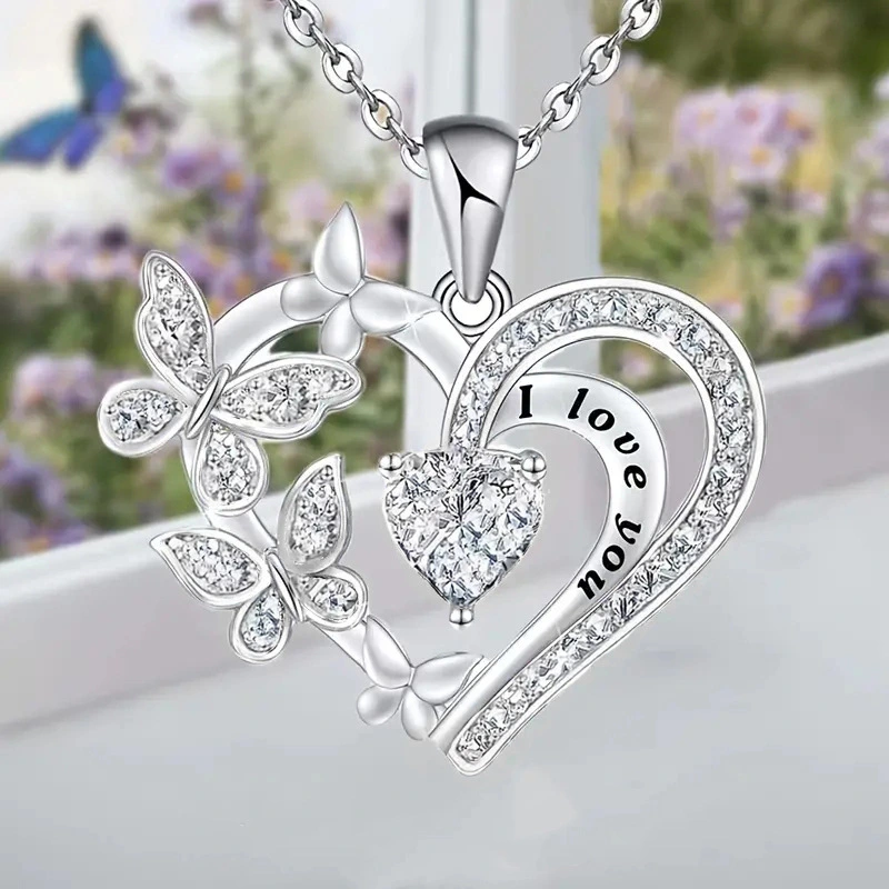 Модная подвеска в форме сердца с бабочкой, нишевый светильник, роскошный стиль, универсальная цепочка для свитера, полая цепочка с буквами в форме сердца