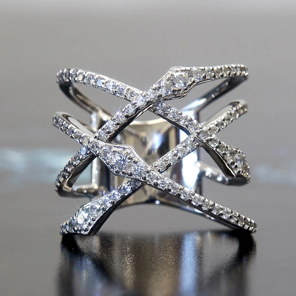 Модное и универсальное индивидуальное американское кольцо с ярким дизайном и перекрестными линиями.
